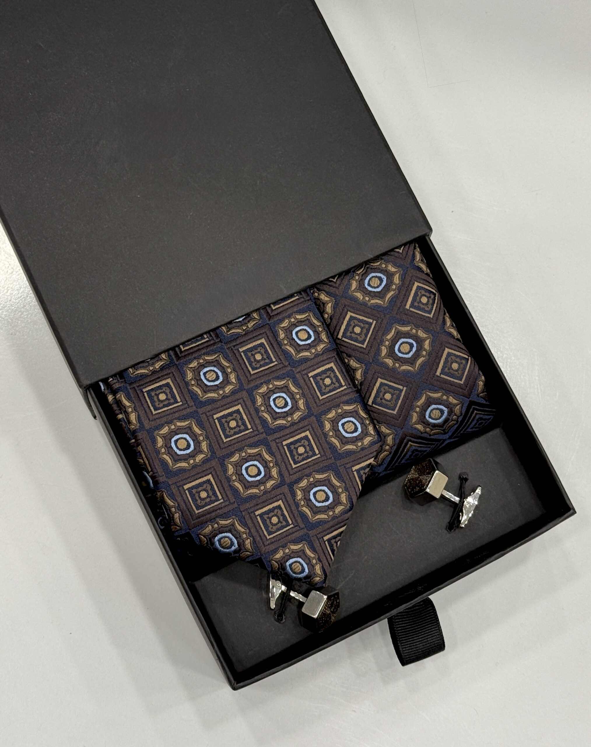 Dark Brown Geometric Vintage Tie | 3 in ONE