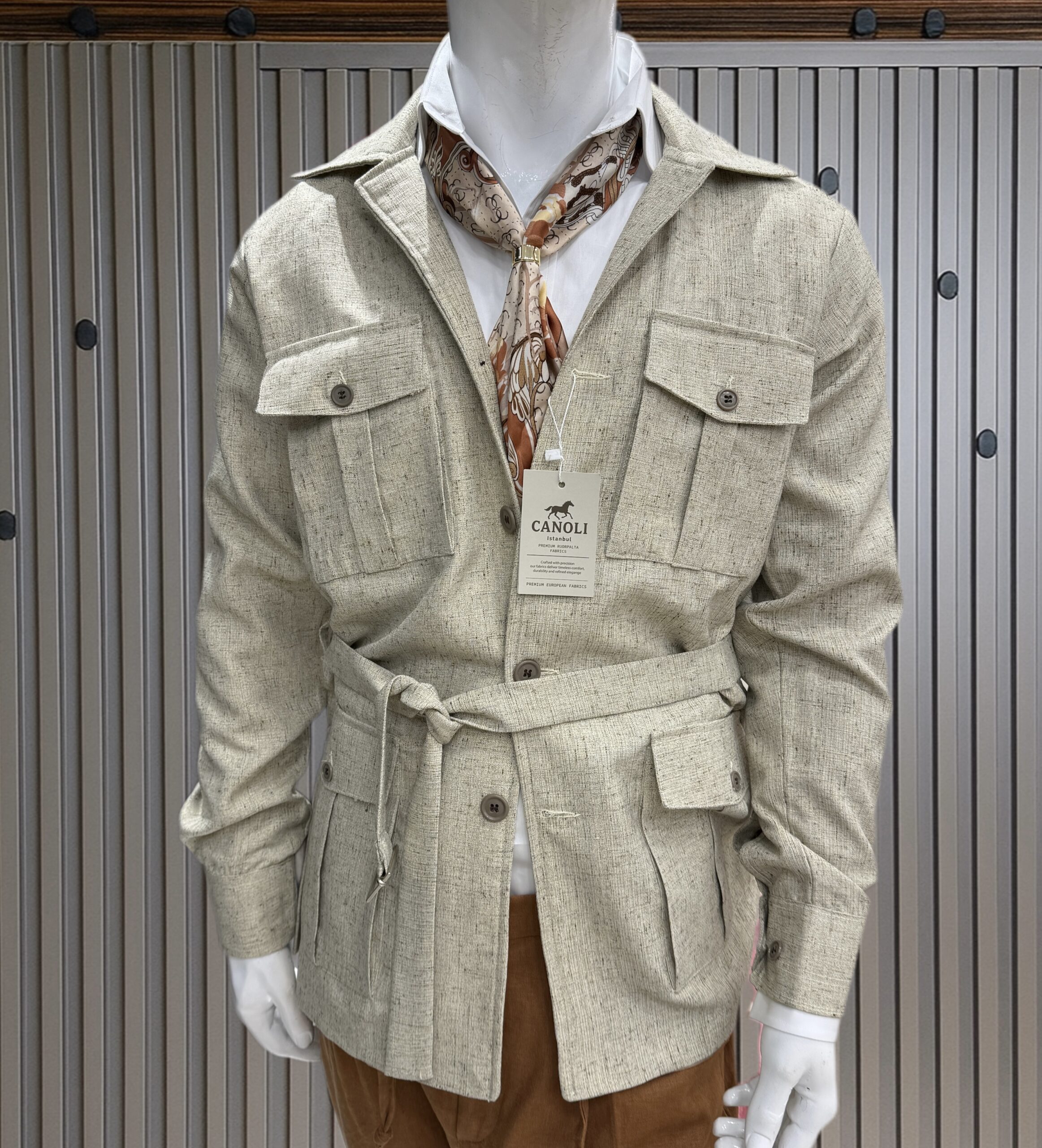 Breathable Regular Fit Commandant X Safari jacket is crafted with heavyweight Italian Vintage linen